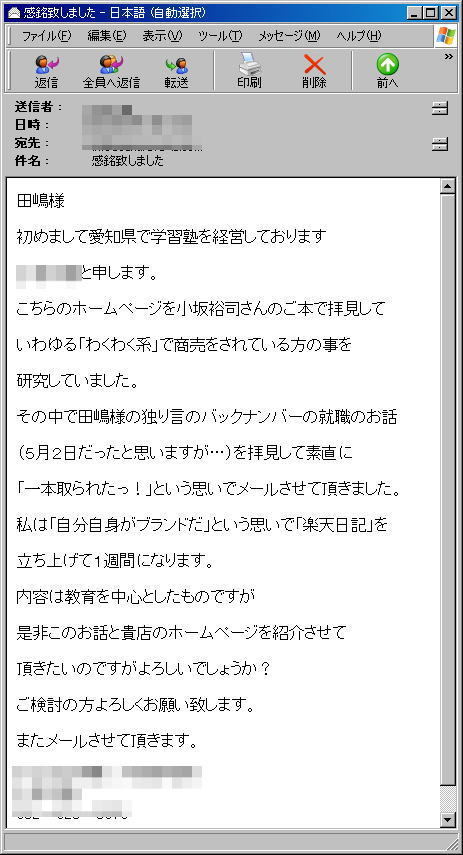 南里さま、いつも温かいお便りありがとうございます。ニュースレターも来年から内容を一新してみたいと思っています。